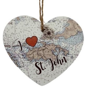 I HEART ST. JOHN WOODEN MAP ORNAMENT